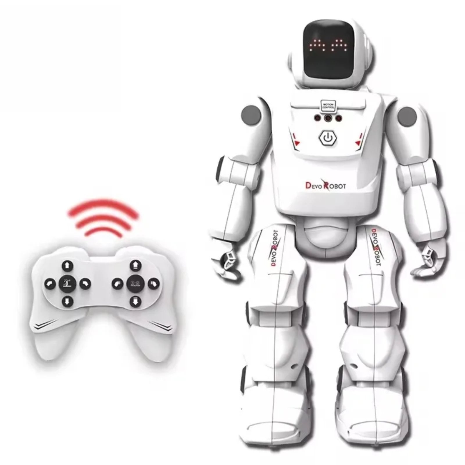 Robot se kontroliše pomoći RC daljinskog upravljača sa seta ili pomoći ruke u režimu detekcije pokreta. Robot se uključuje i uključuje pomoć dugmeta na prednjoj strani. Funkcije daljinskog upravljača uključuju vožnju i hodanje u svim pravcima, pleš i mogućnost programiranja pokreta rada u personalizovani sistem. Režim kontrole rada pomoću ruke se uključuje sa gornjim dugmetom u srednje igračke. Senzor pokreta se nalazi ispod duga. U ovom režimu, robot se kreće u ravni napred-nazad-desno-levo. Posle 2 minuta neaktivnosti, robot prelazi u režim ispravnosti. Robot se napaja sa 4 k AA 1.5V baterije (nisu uključene), daljinski upravljač se napajaju sa 2 k AA 1.5V baterije (nisu uključene). Specifikacija: - robot daljinsko upravljanje za decu od 5 godina, - funkcije hodanja, vožnje i plesa kontrolisane RC daljinskim upravljanjem, - funkcija programiranja upravljanja sekvencom, - mogućnost kretanja rada (pred-nazad-desno-levo), - ručno pokretne robotske ruke, - digitalni displej na glavi rada, - zvučni efekti sa svakim pokretom.